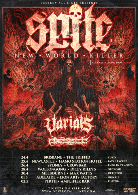 Southern California deathcore wrecking crew Spite will return to Australia in April 2026 for their first-ever Australian headline tour, bringing with them Pennsylvania’s Varials and local heavyweights DIESECT. Today the band reveal the full lineup of local supports joining them across the run. Tickets on sale now via Destroy All Lines. The seven-date tour kicks […] -